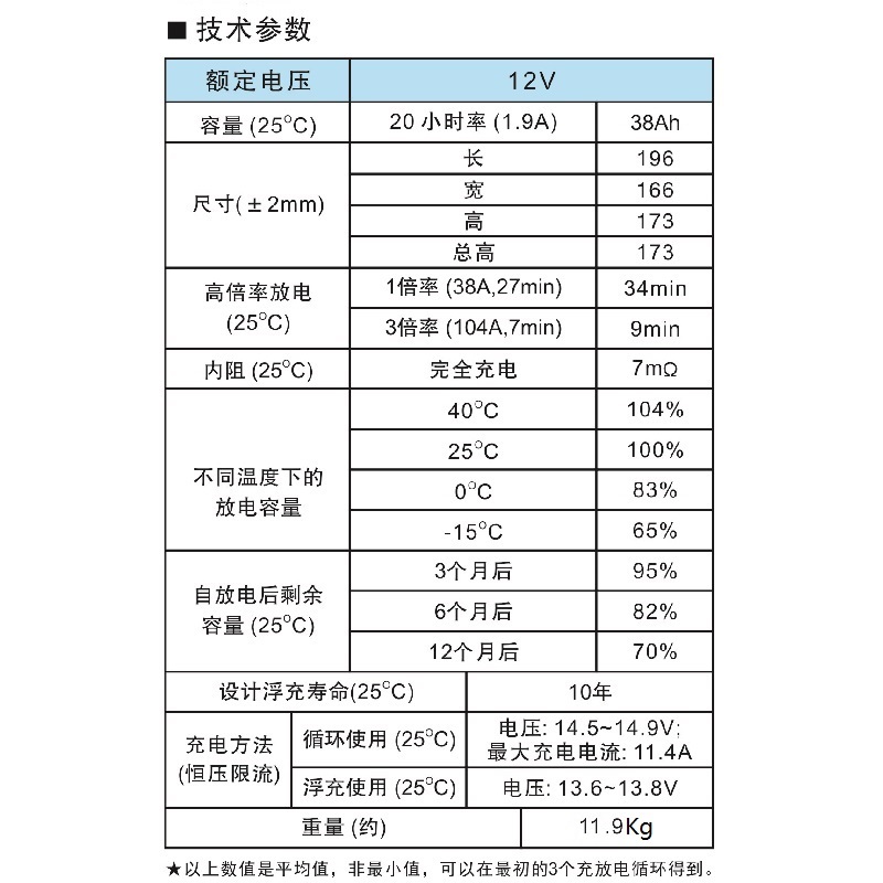 額定容量:38AH/20HR